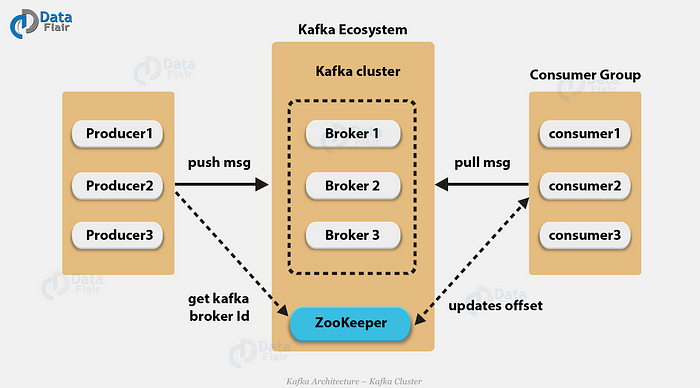 Kafka Broker 는 Kafka Cluster 의 일부 구성원으로 동작된다. 여러 개의 broker 가 하나의 Kafka Cluster 에 포함될 수 있고, 이 중 하나는 컨트롤러 역할을 한다. 컨트롤러는 Broker 들이 정상적으로 동작 하는지 모니터링하고 Broker 에게 담당 파티션을 할당 해준다.