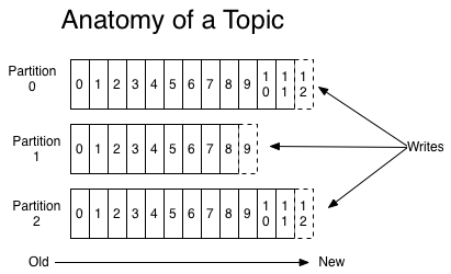 Kafka의 메시지는 Topic으로 분류가 된다. 하나의 Topic은 여러개의 파티션으로 구성될 수 있다. 메시지는 파티션에 앞에서부터 뒤로 추가 되는 형태로만 기록되고 맨 앞부터 차례대로 메시지가 읽힌다.